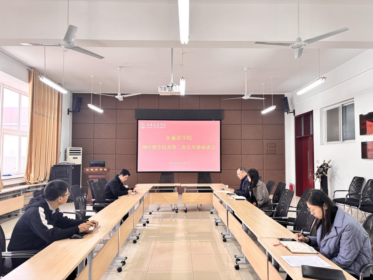 2025年10月21日、28日,交通法学院举办了2025年秋季学期期中公开课研讨活动。活动采取“教室听课—课后研讨”模式进行。本次公开课分别由《宪法学》主讲教师李建和《物权法学》主讲教师宋俊杰主持。学校督导专家牟荣华,学院党委书记王洪鹏、院长范冠峰、副院长张志文和教研室主任、教师代表参加了活动。