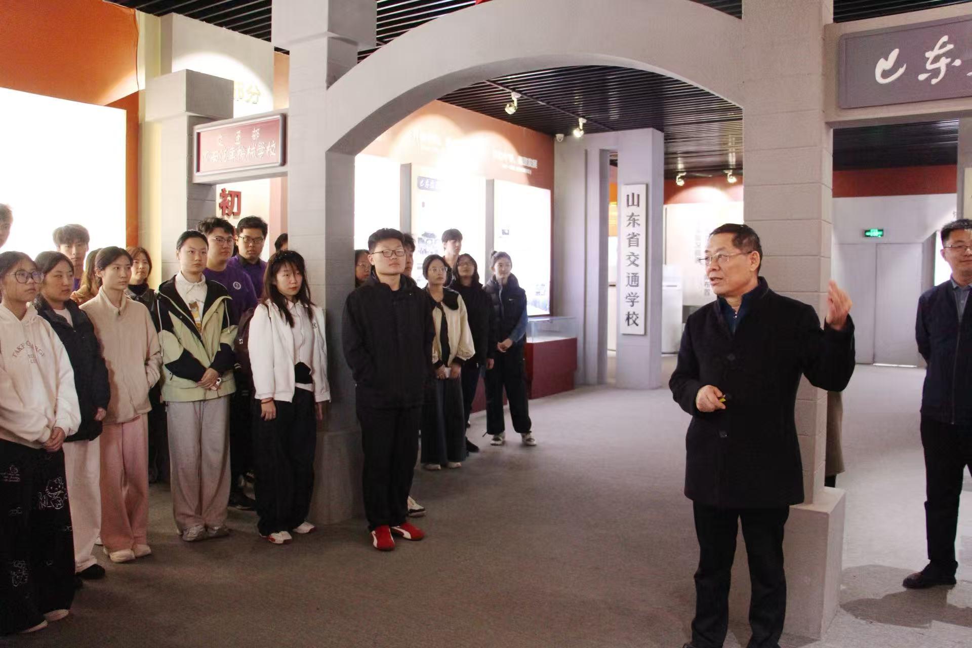 活动伊始,王洪鹏指出,校史是学校精神与文化的深度浓缩,新生了解校史,能快速搭建起与校园的情感桥梁,融入集体生活。在参观过程中,娄进举凭借自身丰富的阅历与对学校深厚的情感,和同学们一同回溯学校发展的过往时光。建校初期,学校白手起家,在简陋条件下师生自制教具、借厂办学,以热忱与毅力开启创业之路;改革开放后,学校积极探索、稳步发展,学科专业从单一走向多元,师资与科研水平不断提升,在交通教育领域崭露头角;如今,学校已呈蓬勃态势,拥有多个一流本科专业建设点,科研成果丰硕,国际交流广泛,正朝着建设高水平应用型大学的目标昂首迈进。同学们听得十分专注,在无声中真切地感受着学校一路走来的风雨历程与成长变迁,每一个片段都如同一幅画卷在眼前徐徐展开。