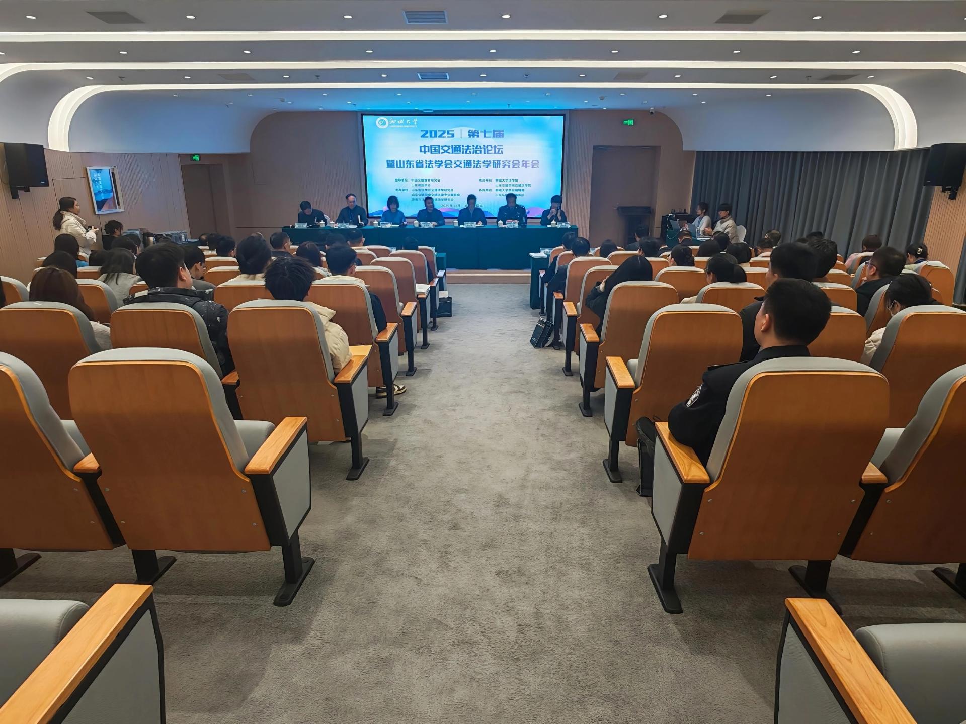 11月22日,第七届中国交通法治论坛暨山东省法学会交通法学研究会2025年学术年会在聊城召开。本次论坛由山东省法学会交通法学研究会主办,山东交通学院交通法学院、聊城大学法学院联合承办。交通运输部法制司法制处处长李景杰、聊城大学副校长苏明海、省交通运输厅法规处四级调研员王相凤等,以及交通法学院党政班子成员、教师代表出席论坛。
