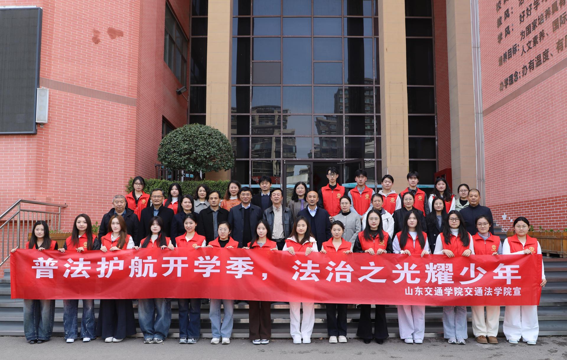 为深入学习贯彻习近平法治思想,深化校地共建与实践育人,3 月 19 日,山东交通学院交通法学院联合长清区委政法委、区教体局、区法学会,在山东师范大学中建长清湖实验学校举行长清区校园法治教育“青衿・司爟”普法行动启动仪式。